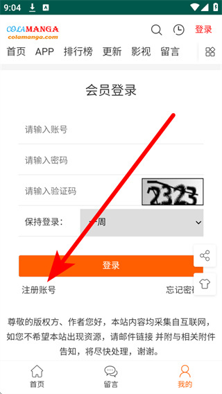 3、在个人中心的登录界面,点击左下角的注册账号,进入注册界面。