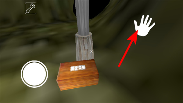 4、按箭头指引点击手部交互按钮,与密码箱完成交互,解锁箱内物品,借助道具推进关卡进程。