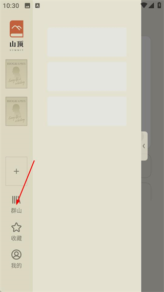 1、进入山顶传记后,点击左上角的菜单按钮,可展开侧边菜单。