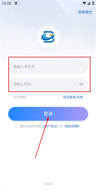 3、在登录页面填写手机号和密码,勾选协议后,点击登录完成账号登录操作。