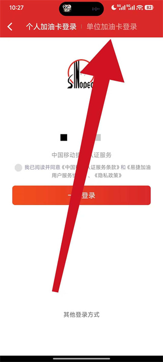 2、在登录界面顶部点击单位加油卡登录,切换到单位账号登录页面。