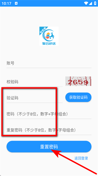 3、输入验证码,设置密码,点击重置密码,完成密码重置。