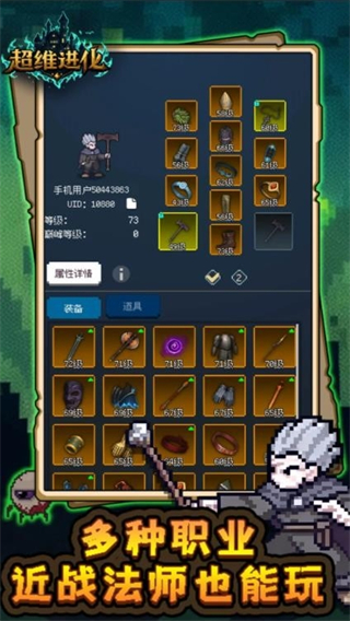 超维进化是一款像素风休闲益智类作品,以角色战斗与成长为核心,提供多样角色供挑选,每个角色都带有专属独特技能效果,操控选中的角色,应对四面八方持续涌来的敌人,在战斗中不断收集强力装备,逐步提升自身实力向最强者迈进,采用简单的放置挂机玩法,让大家在轻松氛围中享受战斗与成长的乐趣。