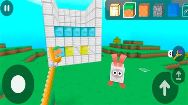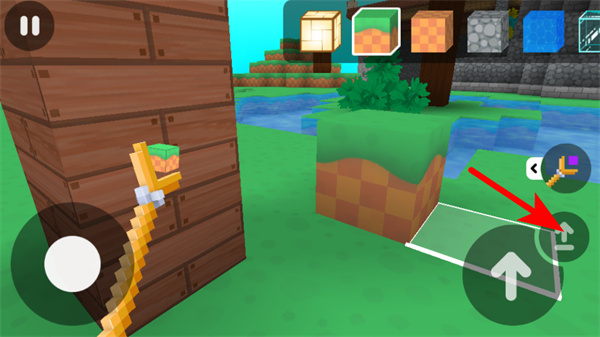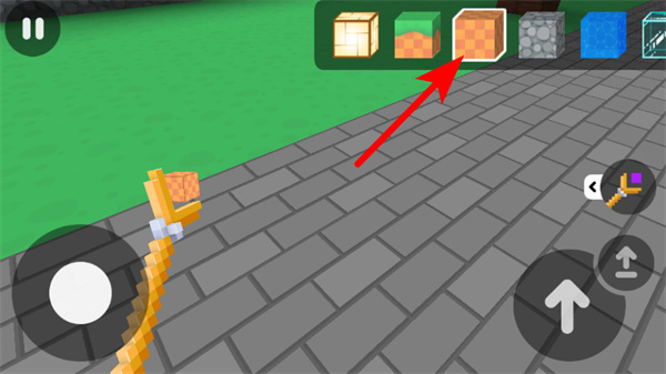 4、按箭头指引选择上方的方块类型,切换建造所用的方块素材,丰富建造内容以推进关卡目标。