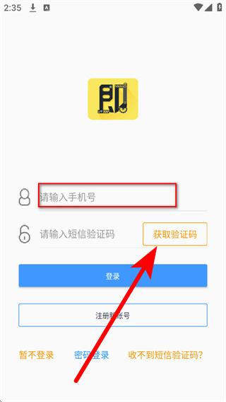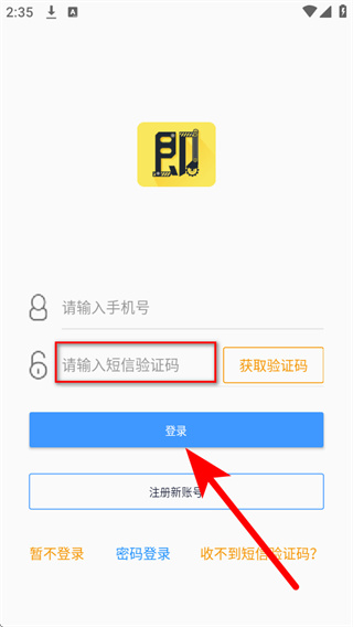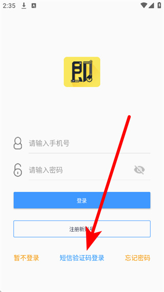 2、在登录界面点击短信验证登录选项,切换到短信登录操作页面。