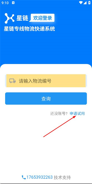 1、在星链专线物流快递系统页面点击申请试用选项,进入体验申请页面。