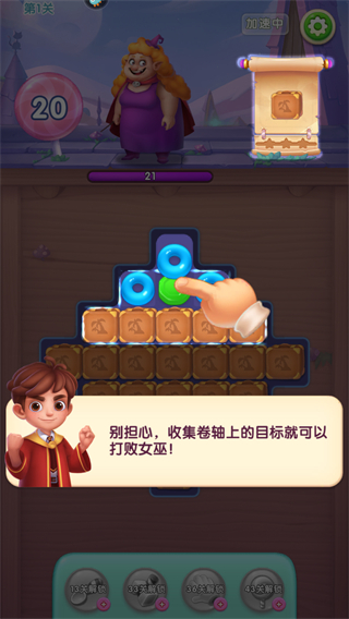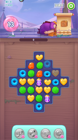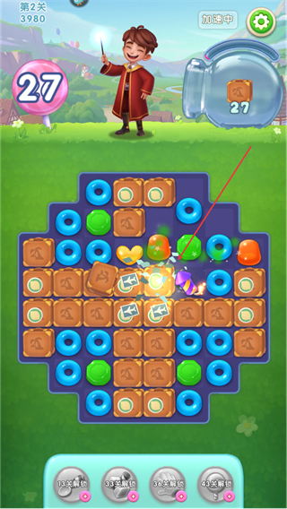 3、持续匹配消除,触发更多特效,快速积累积分,推进关卡进度。