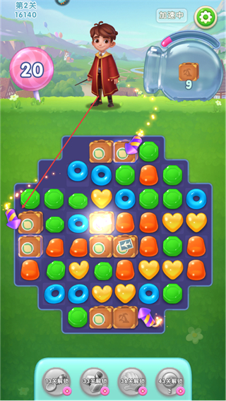 5、趣味道具助力闯关,通过消除特定糖果组合解锁道具,道具可快速清除大片糖果或突破障碍,降低高难度关卡的通关压力。