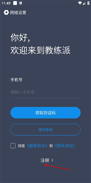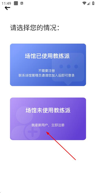 1、在教练派登录页面点击底部的注册选项,进入情况选择页面。