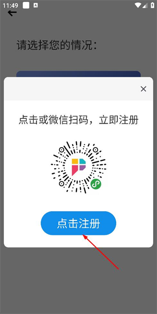 3、在注册弹窗中使用微信扫码后点击注册按钮,完成新用户的注册操作。