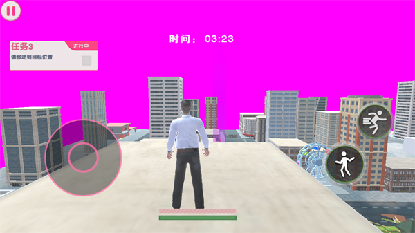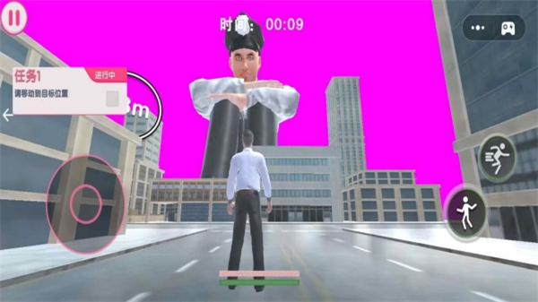 2、当前是任务1即警察移动到目标位置,你需借助右侧动作按钮操控角色移动,按提示向40m外的目标位置行进。