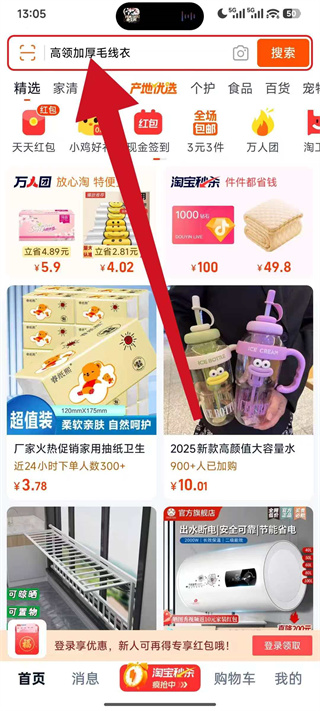 2.搜索好商品,首单礼金叠加红包更便宜