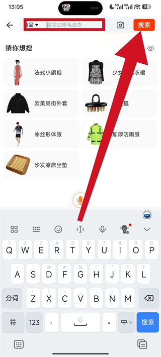 2、在搜索栏输入目标商品关键词,点击搜索进入商品列表页。