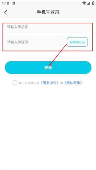 3、在手机号登录页面,填写手机号,再填写对应验证码,点击登录,完成登录操作。