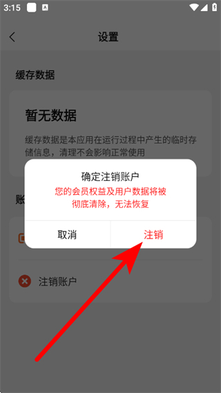 4、在弹出确定注销账户的提示框,点击注销,完成账户注销。