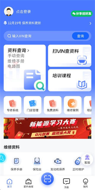 修车助手是汽修技师专属的专业技术平台,集海量维修资源与系统培训课程于一体,扫描或输入VIN码即可精准匹配详细维修案例,每周更新上千车型维修资料,涵盖详尽电路图与养护指南,同步上线新能源维修技能课程,适配新老技师成长需求,随时随地赋能专业提升,轻松攻克各类维修难题,成为汽修路上的得力伙伴。