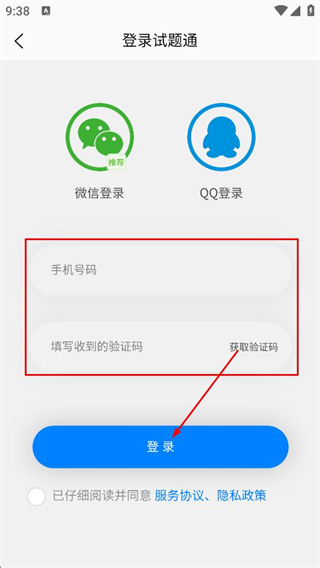 4、在登录页面,填写手机号码、验证码,再点击登录,完成登录操作。