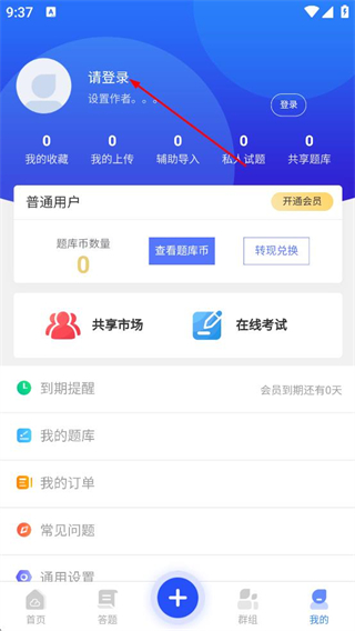 2、在试题通首页,点击底部的我的选项,即可进入个人页面。
