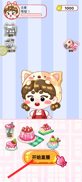 在充满美食的卡通世界里,有一间可以自由搭配美食的甜心铺,这里能制作从草莓到柠檬甚至辣味的各类果冻,还能前往当地超市挑选彩虹糖果等美味食材,在这里只需开启直播,展示美食制作与品尝过程,就有机会一步步成为深受大家喜爱的吃播网红。
