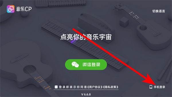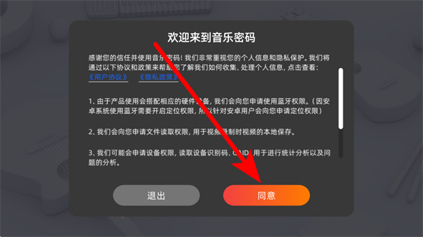 1、打开音乐CP后,弹出弹窗,点击同意,进入登录选择页面。