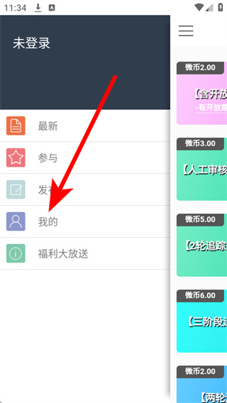 2、在侧边栏菜单中选择我的选项,进入我的页面。