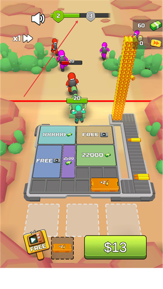 1、在关卡界面,点击下方$13按钮获取资源,解锁区域或升级,准备迎敌。