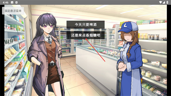 3、在该场景里,点击选择界面显示的今天只要啤酒或还是来点香烟糖吧选项,与店员互动来推进游戏流程。