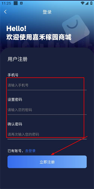3、在注册账号页面填写信息后,点击立即注册完成注册操作。