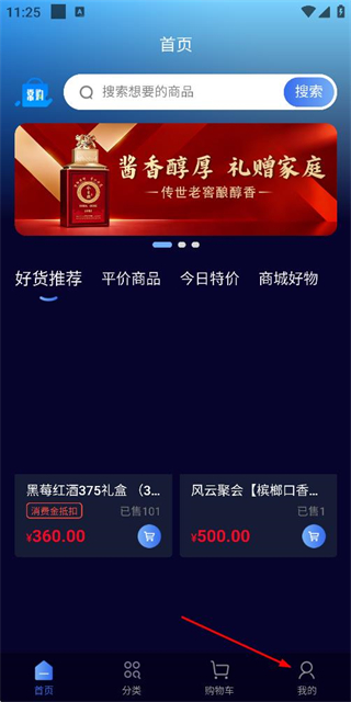1、在首页点击底部我的,进入登录页面。