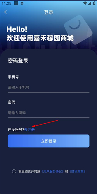 2、在登录页面点击去注册,进入注册账号页面。