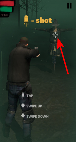 1、进入射击关卡后,瞄准目标如稻草人,点击射击按钮完成攻击,这是基础的射击操作方式。