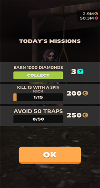 3、完成训练关卡后,点击COLLECT按钮,领取关卡奖励如道具、货币,解锁后续内容。