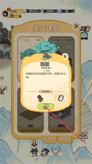 2、在生产建筑界面里,找到灵树这一生产建筑选项,点击其对应的建造按钮,准备解锁该设施来产出资源。