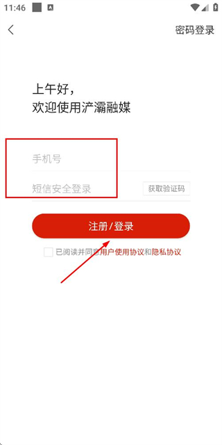 3、在登录页面填写手机号和验证码,勾选协议后,点击登录完成账号登录操作。