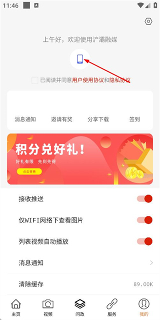 2、在个人中心页面点击手机图标,进入登录页面。