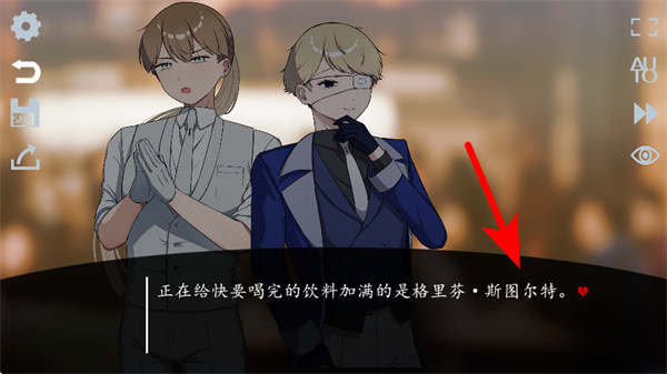 3、进入剧情场景后,查看底部的文本提示,了解当前场景的角色互动信息,为后续对话做准备。
