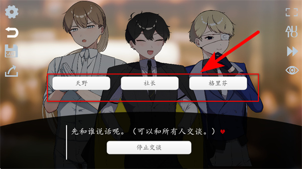 4、在对话选择界面,点击目标角色如格里芬对应的按钮,即可与该角色触发对话,推进剧情发展。