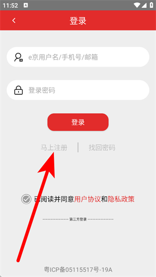 2、在登录页面,点击马上注册,进入新用户注册页面。