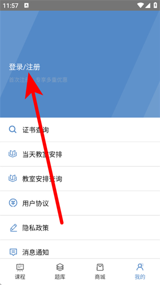 2、在我的页面,点击登录注册,进入登录注册界面。