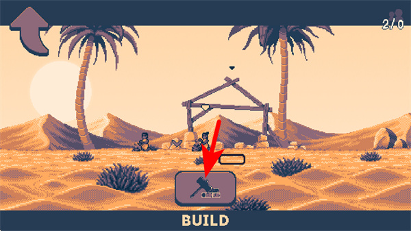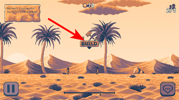 2、进入场景后,点击BUILD按钮,打开建设功能界面,准备进行资源收集与建筑搭建。