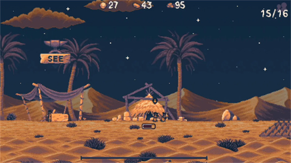 1、进入游戏主界面后,点击NEW GAME按钮,即可开启新的文明建设关卡,进入沙漠生存场景。