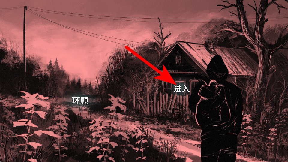 4、在场景界面中,点击进入按钮,即可进入目标建筑如小屋,探索区域推进剧情。