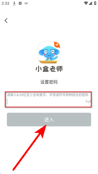 4、进入设置密码页面,输入符合要求的密码,点击进入完成账号注册。
