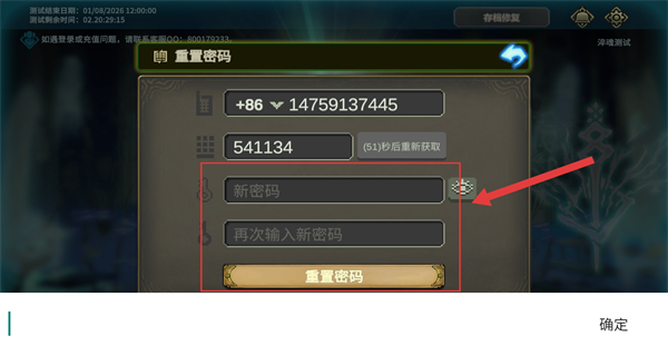 4、输入收到的验证码后,依次填写两次新密码,点击重置密码按钮,即可完成密码重置。