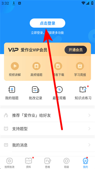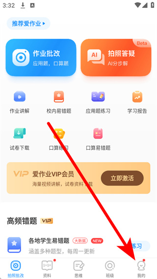1、打开爱作业,进入首页后点击底部导航栏的我的,进入个人中心页面。