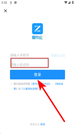 3、在登录界面的手机号输入手机号码,勾选协议后,点击获取验证码。