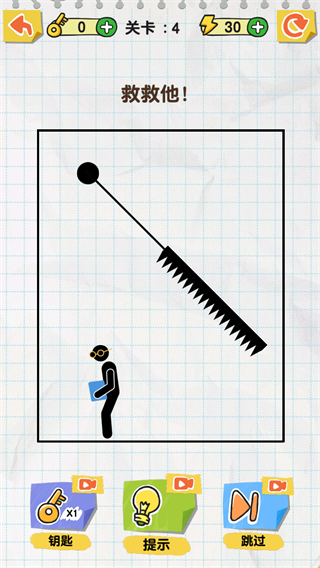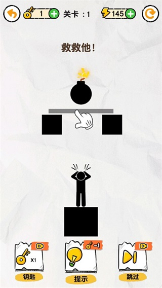 采用经典火柴人造型,形象简约却不失生动,搭配简洁场景设计,既突出核心玩法,又降低视觉疲劳,让玩家专注于画线策略,感受纯粹的休闲游戏魅力。