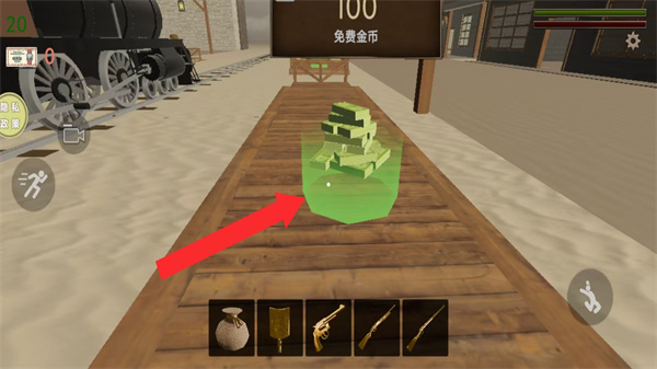 2、在关卡中靠近免费金币道具,自动拾取获取资源,用于解锁/升级武器。