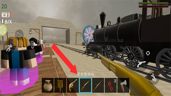 4、遇到敌人时,使用当前武器攻击,同时可切换更强力的武器如黄金弹弓枪提升输出。