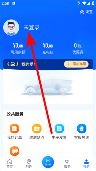 2、在我的页面,点击未登录区域,进入登录界面。